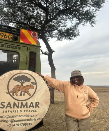 Sanmar Safaris & Travel was born from a shared dream between two explorers, Marion and Samson. What began as weekend adventures and long conversations turned into a vision: to create a travel company that offers more than vacations, experiences that transform, inspire, and connect. With a passion for wildlife, culture, and genuine hospitality, they built a brand rooted in trust, personalization, and unforgettable journeys across East Africa.